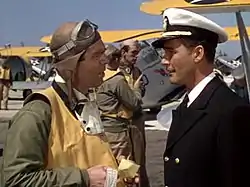 When principal photography commenced, the initial aircraft scenes featured U.S. Navy aircraft in their pre-war colorful schemes, set off by the Technicolor process, making this a vibrant document, unique for its time.[18]