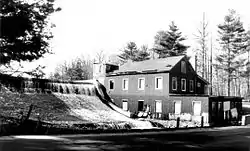 The mill on the site was originally built in about 1875 by Russell Doane, a local farmer, as a sawmill. It was powered by the water behind an earthen dam built across the Falls River, which forms a millpond of about 73 acres (30 ha). The extensive logging of the area that Doane anticipated did not materialize, and the mill was foreclosed on in 1884. It passed through a succession of owners before being sold to Charles Messerschmidt, Sr., who owned an adjacent farm, in 1914. Messerschmidt derived most of his income from the farm and ran the mill part-time. In 1929, he and three other men formed a partnership which bought the Deep River Manufacturing Company.[2]