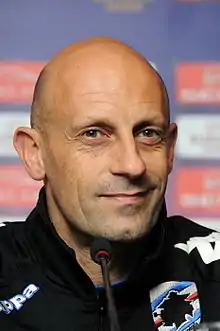 On the same day, he was announced as new head coach of Sampdoria, with whom he made his managerial debut on the European stage in the third qualifying round of the 2010–11 UEFA Champions League and then the 2010–11 UEFA Europa League.[6] Sampdoria's form in Serie A so far had been middling, with the Blucerchiati keeping a tight defense, but struggling to score, especially after the departures of Antonio Cassano and Giampaolo Pazzini. He was sacked on 7 March 2011 after a home loss of 3–2 against Cesena, the last match of a run of ten games that included seven losses and just one win. He was replaced by Alberto Cavasin on the same day.[7]