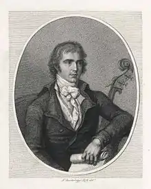 Domenico Carlo Maria Dragonetti (7 April 1763 – 16 April 1846) was an Italian double bass virtuoso and composer with a 3 string double bass. He stayed for thirty years in his hometown of Venice, Italy and worked at the Opera Buffa, at the Chapel of San Marco and at the Grand Opera in Vicenza. By that time he had become notable throughout Europe and had turned down several opportunities, including offers from the Tsar of Russia. In 1794, he finally moved to London to play in the orchestra of the King's Theatre, and settled there for the remainder of his life. In fifty years, he became a prominent figure in the musical events of the English capital, performing at the concerts of the Philharmonic Society of London as well as in more private events, where he would meet the most influential persons in the country, like the Prince Consort and the Duke of Leinster. He was acquainted with composers Joseph Haydn and Ludwig van Beethoven, whom he visited on several occasions in Vienna, and to whom he showed the possibilities of the double bass as a solo instrument. His ability on the instrument also demonstrated the relevance of writing scores for the double bass in the orchestra separate from that of the cello, which was the common rule at the time. He is also remembered today for the Dragonetti bow, which he evolved throughout his life.