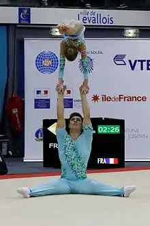 ![]() Dominic Smith and Alice Upcott at the 2014 Acrobatic Gymnastics World Championships. | ||||||||||||||||||||||||||