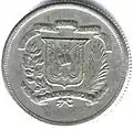 Coins were introduced in 1937 in denominations of 1, 5, 10, 25 centavos and 12 pesos with limited numbers of 1 peso coins first minted in 1939. All coins bore the national arms on the reverse while all except the 1 centavo bore a crowned allegorical Indian head on the obverse. The 1 centavo instead depicted a palm tree, the symbol of the ruling Dominican Party. The coins were all of identical weights, diameter, and composition to U.S. coins of the era. Two denominations appeared on these coins, one in "centavos" or "pesos" and another in "gramos" to represent a pre-decimal silver weight system formerly used in much of the region. A two coin set of 1955 commemorative coins were minted for the 25th anniversary of Rafael Trujillo's reign. These consisted of a gold 30 peso (33,000 minted) and a silver one peso, both showing him in profile. 50,000 of the silver one peso coins were produced in issued into circulation, but after Trujillo was assassinated in 1961 an estimated 32,550 were recalled and melted down. In 1963 the silver content in the 10, 25, 50, and 1 peso coins was reduced from 0.900 pure to 0.650 pure. The 1963 issue also distinctively commemorated the centennial of the republic and the crowned Indian head was added to the 1 centavo, replacing the palm.