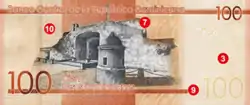 100 Pesos | Orange | Francisco del Rosario Sánchez, Juan Pablo Duarte and Matías Ramón Mella | The Count's Gate | |