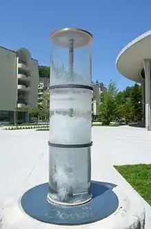 In 1908, a highly mineralized water spring was discovered by a team under the leadership of the geologist and inspector of the Karlovy Vary spa, dr. Joseph Knett. This mineral water was given the name DONAT. In the interwar period, this part of Slovenia became a part of the Kingdom of Yugoslavia. Rogaška, as the most luxurious and modern resort in the entire territory, attracted the new elite, the government and military authorities and industrial moguls. Following the Second World War, new wells were found under the guidance of Professor Bać from Sarajevo and in collaboration with the Geological Institute in Ljubljana. This drilling signified a new beginning with regard to research and methods of capturing underground water in Slovenia. Up to the present time, the comprehensive geological, hydro-geological and geophysical research was carried out at Rogaška Slatina under the guidance of Professor Bać and Anton Nosan from the Geological Institute in Ljubljana. On the basis of the positive results of this research, quite a few wells were drilled for the capture of mineral water and CO2 gas which ensured a sufficient supply of mineral water, of type Donat Mg (and Tempel), to the Health Spa Resort and its Bottling Complex.[5]
