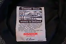 Along with Harris Tweed manufactured in the Scottish Highlands, Donegal is the most famous tweed in the world. While tweed in Ireland is by no means exclusive to Donegal, Vawn Corrigan confirms Donegal as the heartland of Irish Tweed.[3] It was used in several of the fashion designer Sybil Connolly's pieces.