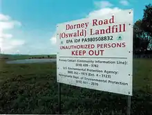 - "National Oil and Hazardous Substances Pollution Contingency Plans; National Priorities List: Deletion of the Dorney Road Landfill Superfund Site". www.federalregister.gov. Federal Register. Retrieved 24 January 2021.