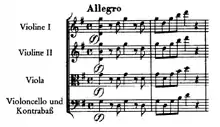 Simultaneous notes in a single part for an orchestral string section may be played as multiple stops or the individual notes may be distributed among the players within the section. Where the latter is intended, divisi or div. is written above the staff.[6]