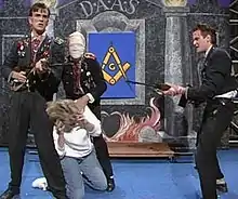 DAAS were known for continuing to act, or to remain in character, during interviews. Much of this was just banter, but they also had serious messages. DAAS were often criticising the media and part of this was to tell outrageous lies to journalists during interviews and attempt to see them published as fact. In one of the best-known instances of this, the group told British reporters that their namesake, former Australian politician Doug Anthony, was a much-loved Prime Minister of Australia who had been assassinated on 11 November 1975, by right-wing extremists. (In fact, Anthony is a former Deputy Prime Minister of Australia who had led the right-of-center National Party of Australia from 1971 to 1984.) The lie was printed in The Times, The Guardian and The Independent.[10][11] This game continued undetected until in 1990 the group told a reporter that they had been cast in Batman and had become great friends with Jack Nicholson, both lies. The story was reported as fact in newspapers around Australia and appeared as a cover story in the TV guide of Melbourne's Herald Sun before the media realised the hoax.[12]