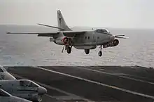 On 31 March 1956, the Skywarrior entered squadron service with the Navy. Initially used in the nuclear-armed strategic bomber role, the emergence of effective ballistic missiles led to this mission being deprioritised by the early 1960s. Throughout the majority of its later service life, the Skywarrior was tasked with various secondary missions, which included use as an electronic warfare platform, tactical reconnaissance aircraft, and high capacity aerial refueling tanker.[1] It was among the longest serving carrier-based aircraft in history, having entered service during the mid-1950s and withdrawn from use in 1991. Throughout its service, the Skywarrior was the heaviest operational aircraft to operate from an aircraft carrier,[2] which contributed to its nickname of "Whale".