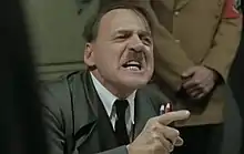 In various home-subtitled remakes over the last few years, Hitler explodes when told that the McMansion he was trying to flip is in foreclosure, that the band Oasis has split up, that the Colts lost the Super Bowl or that people keep making more "Downfall" parodies.