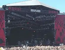 Main Stage The main stage was situated in the centre of the arena with crowd control moving around it, and was the largest of all three stages, the safety barriers used at this stage were in a T shape so as to avoid crowd crush in the middle. The stage was open-air and named in honour of the 25th anniversary of Kerrang! magazine. Down played an unannounced set on Saturday (With the laminates showing ??? in their time slot); opening up the Main Stage.[11]