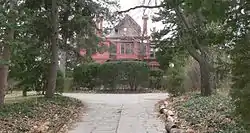 A grand 23-room red brick mansion built in the Queen Anne style, the key feature of the home is a three-story square tower that rises above the south side main entrance.[2] The cost of the structure was $60,000.[2] The home is the crown jewel of the neighborhood Mercer platted in the 1880s. In the 1880s the city's cable cars stopped at the Mercer House.[3] The house has been subdivided into apartments and much of the elaborate Victorian trim was removed in 1926.[2] The house was listed on the National Register of Historic Places in 1976.[4]