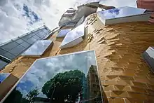 The building's façade, which was made of 320,000 custom designed bricks, is described as the "squashed brown paper bag". Frank Gehry said, "Maybe it's a brown paper bag, but it's flexible on the inside, there's a lot of room for changes or movement."[3]