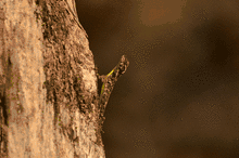 While not capable of powered flight they often obtain lift in the course of their gliding flights. Glides as long as 60 m (200 ft) have been recorded, over which the animal loses only 10 m (33 ft) in height, which is quite some distance, considering that one lizard is only around 20 cm (7.9 in) in total length, tail included.[1] They are found in South Asia and Southeast Asia, and are fairly common in forests, areca gardens, teak plantations and shrub jungle.