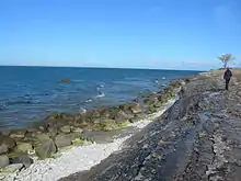 Rounded erratic boulders of crystalline rock composition that have been drifted next to Ordovician limestone bank along the shoreline in NW Osmussaar, Estonia.