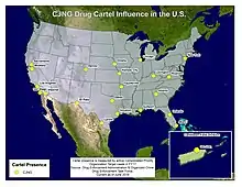 The United States of America is the world's largest consumer of cocaine[66] and other illegal drugs.[67][68][69] This is a list of American criminal organizations involved in illegal drug traffic, drug trade and other related crimes in the United States: