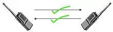 A half-duplex (HDX) system provides communication in both directions, but only one direction at a time, not simultaneously in both directions.[1] Typically, once a party begins receiving a signal, it must wait for the transmission to complete, before replying.
