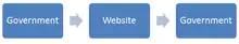 Pushing data over the internet, e.g.: regulative services, general holidays, public hearing schedules, issue briefs, notifications, etc. two-way communications between one governmental department and another, users will interact in dialogue with agencies and post issues, comments, or requests to the agency. Conducting transactions, e.g.: Lodging tax returns, applying for services and grants. Governance, e.g.: To alter the national transition from passive info access to individual participation by: