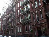 Earl's Court is a district of Kensington in the Royal Borough of Kensington and Chelsea in West London, bordering the rail tracks of the West London line and District line that separate it from the ancient borough of Fulham to the west, the sub-districts of South Kensington to the east, Chelsea to the south and Kensington to the northeast.[2] It lent its name to the now defunct eponymous pleasure grounds opened in 1887 followed by the pre–World War II Earls Court Exhibition Centre, as one of the country's largest indoor arenas and a popular concert venue, until its closure in 2014. The area has long been known as "Bedsitter Land" with many of its stuccoed terraces converted into studio flats, hotels and hostels.[3]