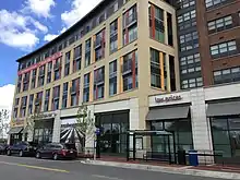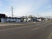 East Glebe is a bus rapid transit station in Alexandria, Virginia, located on Richmond Highway (U.S. Route 1) between East Glebe Road and Hume Avenue. It is a stop on the portion of dedicated bus-only highway along the Metroway bus rapid transit line, providing two-way service along the route. The station provides service to the central Potomac Yard and Potomac communities in Alexandria.