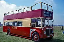 East Kent was taken over by the National Bus Company on 1 January 1969, during this time the company's first rear engined double deckers arrived. These were 20 Daimler Fleetlines with Park Royal bodywork for Thanet garage. These were also the Company's first OMO (one man operated) double deckers. Later on some AEC Regents were also converted to OMO to reduce the cost of having 2 crew on each bus but these tended to be used only at peak hours. In 1971 the last buses were delivered in the traditional maroon and cream livery, these were 12 AEC Swifts with Alexander bodywork. Leyland Nationals started to enter the fleet in the 1970s bringing with them the National Bus Company standard livery of Poppy Red and white. In the mid-1970s the Bristol VRT entered the fleet, the first batch having 14'6" ECW bodywork. Later batches had rare Willowbrook bodies before the final batch reverted to the standard 13'8" ECW body, by that time the NBC's standard vehicle. These cleared the last of the AEC Regents from normal passenger service in the early 1980s although some had a swan song on the park and ride for the Open Golf and Sandwich, whilst others were used on contracts and for driver training.