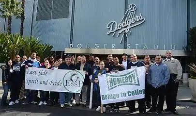 In 2010, East Side Spirit and Pride partnered up with Father Greg Boyle and Homeboy Industries in an attempt to reach out to the surrounding community. Professor Dennis Sanchez teaches a class called Bridge to College at Homeboy Industries on a routine basis in addition to having ESSP members tutor members of Homeboy Industry. In addition he takes members from Homeboy Industries on tours to East Los Angeles College and other colleges in the Los Angeles area. As a result, many students from Homeboy Industry have enrolled at East Los Angeles College and other community colleges in the greater Los Angeles area. Proceeds from the ESSP Annual Scholarship Dinner and its lunch and golf tournament go to fund educational scholarships and grants for members of Homeboy Industries and other at-risk members of the community. [4]