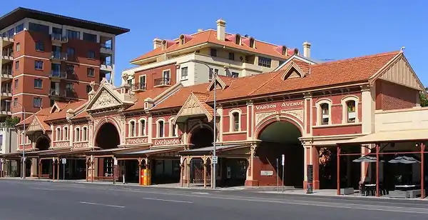 East Terrace marks the eastern edge of the Adelaide city centre. It is one of the main north-south thoroughfares through the east side of the city.[2] Although the terrace essentially runs north-south between North Terrace and South Terrace, unlike Adelaide's other three terraces, its path is far from a straight line; travelling the entire length of East Terrace requires turning at right angles at most intersections from Pirie Street onwards. These days however, the traffic flow, after a swerve to the east between Grenfell and Pirie Streets, continues southwards over the Pirie intersection into Hutt Street and on down to South Terrace.
