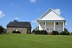 The Old Ebenezer Church was originally known as Butcher's Meeting House or Ebenezer Meeting House. The church is mentioned in the 1769 will of Samuel Butcher Sr. as already existing. However, some doubt appears to exist concerning whether the present "old church" is that mentioned in the will, as meeting minutes from 1804-1806 describe "finishing the meeting house." Ebenezer Church was organized in 1804 by nine members of the Goose Creek Baptist Church and eight members of the Ketoctin Baptist Church. By the 1830s a schism had developed among Baptists concerning church practices, with "New School Baptists" opposing "Old School" or "Primitive Baptists." By 1834 the congregation had split into these two camps, but both continued to use the church. A fire in 1855 may have spurred the construction of a new church for the New School congregation immediately adjacent to the old church.[3]