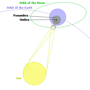 Typically the cross-section of the objects involved in an astronomical eclipse are roughly disk shaped.[5] The region of an object's shadow during an eclipse is divided into three parts:[6]