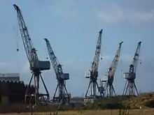 Clydeside shipyards before the 1914 had been the busiest in the world, turning out more than a third of the entire British output. They expanded dramatically during the war, primarily to produce transports of the sort that German submarines were busy sinking. Confident of postwar expansion, the companies borrowed heavily to expand their facilities. But after the war, employment tumbled as the yards proved too big, too expensive, and too inefficient; in any case world demand was down. The most skilled craftsmen were especially hard hit, because there were few alternative uses for their specialized skills.[80] A serious weakness on the engineering side was a lag in developing the new technology of turbine engines, diesel engines, and welding techniques. The yards went into a long period of decline, interrupted only by the Second World War's temporary expansion. In the 21st century, only a handful of ship yards remain active.[81]