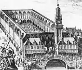 - The establishment of the Bank of Amsterdam (Amsterdamsche Wisselbank), often considered to be the first historical model of the central bank,[43][44][45] in 1609. The birth of the Amsterdamsche Wisselbank led to the introduction of the concept of bank money. Along with a number of subsidiary local banks, it performed many functions of a central banking system.[46][47][48][49][50] It occupied a central position in the financial world of its day, providing an effective, efficient and trusted system for national and international payments, and introduced the first ever international reserve currency, the bank guilder.[51] Lucien Gillard calls it the European guilder (le florin européen),[52] and Adam Smith devotes many pages to explaining how the bank guilder works (Smith 1776: 446-455). The model of the Wisselbank as a state bank was adapted throughout Europe, including the Bank of Sweden (1668) and the Bank of England (1694).