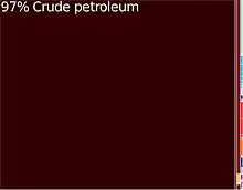 Exports in 2004 reached US$10,530,764,911. The vast majority of Angola's exports, 92% in 2004, are petroleum products. US$785 million worth of diamonds, 7.5% of exports, were sold abroad that year.[41] Nearly all of Angola's oil goes to the United States, 526 kbbl/d (83.6×103 m3/d) in 2006, making it the eighth largest supplier of oil to the United States, and to China, 477 kbbl/d (75.8×103 m3/d) in 2006. In the first quarter of 2008, Angola became the main exporter of oil to China.[42] The rest of its petroleum exports go to Europe and Latin America.[29] U.S. companies account for more than half the investment in Angola, with Chevron-Texaco leading the way. The U.S. exports industrial goods and services, primarily oilfield equipment, mining equipment, chemicals, aircraft, and food, to Angola, while principally importing petroleum. Trade between Angola and South Africa exceeded US$300 million in 2007.[43] From the 2000s, many Chinese have settled and started up businesses.[44]