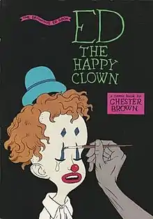 Ed the Happy Clown is a graphic novel by Canadian cartoonist Chester Brown. Its title character is a large-headed, childlike children's clown who undergoes one horrifying affliction after another. The story is a dark, humorous mix of genres and features scatological humour, sex, body horror, extreme graphic violence, and blasphemous religious imagery. Central to the plot are a man who cannot stop defecating; the head of a miniature, other-dimensional Ronald Reagan attached to the head of Ed's penis; and a female vampire who seeks revenge on her adulterous lover who had murdered her to escape his sins.