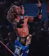 Edge went on to solidify himself as an emerging singles competitor by winning the 2001 King of the Ring tournament and becoming a face by siding with the WWF during the Invasion storyline.[51] Christian betrayed Edge shortly afterward,[52] and the two feuded over Edge's Intercontinental Championship (which he won at SummerSlam) that he later lost to Christian at Unforgiven,[53] though Edge later captured the title in a ladder match at No Mercy.[54] Following this, Edge lost the Intercontinental title to Test[55] and shortly afterwards won the WCW United States Championship from Kurt Angle.[56] On November 3 at Rebellion, Edge defeated Christian in a Steel cage match to retain the Intercontinental Championship, then Edge defeated Test at Survivor Series to unify the Intercontinental Championship with the United States Championship.[57] From there, Edge was placed in a feud with William Regal for the Intercontinental Championship. Edge first defeated Regal at Vengeance to retain the championship: however, he would come up short in the new year, losing the title to Regal at the Royal Rumble and then coming up short in his rematch against Regal at No Way Out in a Brass Knuckles on a Pole match.[58] On the March 3 episode of Sunday Night Heat, Edge defeated Mr. Perfect, and at WrestleMania X8, Edge found himself in a match with Booker T that was the result of Edge beating out Booker for a fictitious Japanese shampoo endorsement.[59] Shortly after defeating Booker at WrestleMania, Edge was drafted to the SmackDown! brand in the first WWF Draft Lottery. During this time, Edge also gained Never Gonna Stop (The Red Red Kroovy) by Rob Zombie as his new entrance theme.