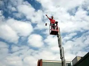 Another common variation on the egg drop competition is the egg hurl competition, where the containers are hurled by a device such as a trebuchet or air cannon. This variation is often used by schools that lack tall places from which to drop the containers.[1][2] The egg hurl variation adds additional difficulties to the design of the container, since it is initially hurled at high speed and has to cope with horizontal as well as vertical velocities upon landing.