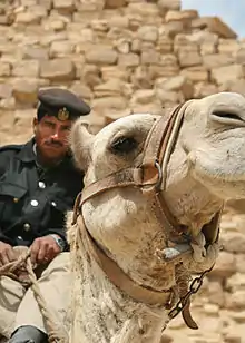 Police on a camel in front of the Red Pyramid in Dahshur.jpg