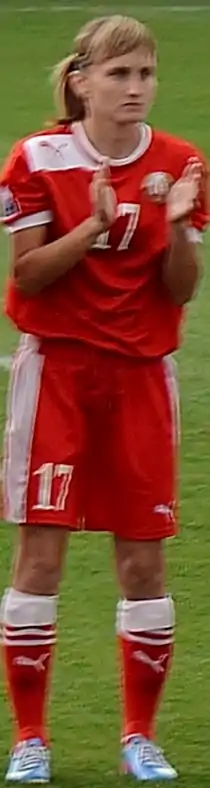 Ekaterina Avkhimovich (born 2 January 1988) is a Belarusian football striker currently playing for Bobruichanka in the Belarusian Premier League. She previously played in the Russian Championship for Ryazan VDV and in the Belarusian Premier League for FC Minsk and Zorka-BDU Minsk, with both she also played the Champions League.[1]