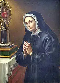 Elisabetta Canori Mora (21 November 1774 – 5 February 1825) was an Italian Roman Catholic professed member from the Secular Trinitarians.[1][2] Mora married an abrasive husband who remained unfaithful and abusive to her but at the time of her death secured his repentance - he ended up as a priest.[3] Mora had a range of spiritual experiences in which she heard the voice of God and visions of the Madonna and other saints while also experiencing religious ecstasies during her life.[4][5]