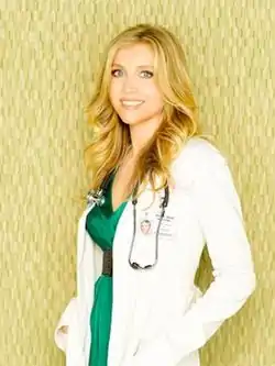 At Sacred Heart, Elliot begins as an intern and later becomes a resident after a grueling yearlong internship. She serves as co-chief resident with J.D. during Season 4. At the end of that season, she briefly leaves to take an endocrinology fellowship, which ends five days later after her research partner finds a cure for osteogenesis imperfecta, the disease they were hired to research.[8] After a brief spell at a free clinic, she returns to Sacred Heart and becomes a senior attending physician. At the end of the episode "My Coffee," she accepts an offer to go into private practice, allowing her to receive double the pay, still work at Sacred Heart, and never have to deal with superiors Dr. Cox (John C. McGinley) or Dr. Kelso (Ken Jenkins) again. In "My Full Moon," she ponders her future career after struggling to deliver the bad news to a patient diagnosed with H.I.V., and tells Turk that if she were lucky enough to get married and to have enough money to survive without working, she would "walk out of this place and never look back."