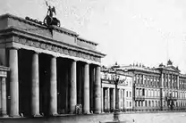 In 1930 the Blücher Palace, located on Pariser Platz, was purchased as a new and permanent home for the U.S. Embassy in Berlin. There was a fire in the Blücher Palace on April 15, 1931 before it could be fully utilized and converted for embassy use. Money shortages in America, due to the Depression, plus soured relations with the Nazi regime (after 1933) further delayed the refurbishing of the damaged building. In fact Ambassador Dodd asked the State Department not to rebuild or refurbish on the site because of the use of Pariser Platz as a Nazi showcase for rallies and marches. In the meantime the embassy operated out of a location in the Tiergarten area on Stauffenbergstraße (then known as Bendlerstraße). In 1938 Ambassador Hugh Wilson (Dodd's replacement) was recalled to the U.S. by President Franklin D. Roosevelt in protest over the Kristallnacht (the rampage orchestrated by the Nazis against Jews in Germany). In 1939 American embassy staff moved into the chancery on Pariser Platz, now refurbished and usable, but made the move somewhat under duress because Nazi building head Albert Speer had ordered embassies in the Tiergarten area vacated in preparation for the grand Nazi city plan called Germania. From 1939 to 1941 there was no ambassador assigned to Berlin, and the embassy was led by a Chargé d'affaires. With World War II underway, and the U.S. still a non-combatant, the staff at the embassy had placed large letters spelling "USA" on the roof of the building hoping this might help avert British bombings. Nevertheless, British bombing of Berlin brought bomb damage to the U.S. Embassy chancery, and its temporary closure – or so it was thought. Four days after the attack on Pearl Harbor the U.S. and Germany were at war and the embassy ceased operations altogether and its personnel were interned for five and a half months at Jeschke's Grand Hotel , a resort in the spa town of Bad Nauheim. (United States Chargé d'Affaires Leland B. Morris and famous American diplomat George F. Kennan were part of this interned group).[1] The Swiss, as a neutral state, took over the embassy building on Pariser Platz for the rest of the war.