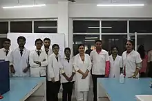 ECPT have well equipped laboratories for the Degree, Diploma curriculum and research. ECPT laboratories are equipped with all the necessary instruments and machines prescribed by the Pharmacy Council of India. UV-Visible spectrophotometer, Colorimeter, Micro-Centrifuge, Nephelometer - Turbidimeter, Flame-Photometer, Refractometer, Polarimeter, Conductivity meter, D.M. Plant, Double Cone Blender, Melting Point Apparatus, Ball Mill Apparatus, Tablet Coating Machine, Tablet Punching Machine, Tablet Hardness Tester, Tablet Counter, Dissolution Test Apparatus, Ampoule Sealing Machine, Projection Microscope, Histamine Chamber, Actophotometer, Student's Organ Bath, Laminar Air Flow etc. are few important instruments available in ECPT laboratories with other necessary instruments for pharmacy courses.[5]