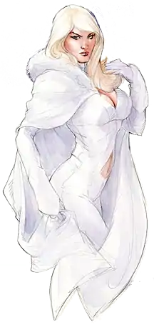 Emma Grace Frost is a fictional character appearing in American comic books published by Marvel Comics, most commonly in association with the X-Men. The character first appeared in The Uncanny X-Men #129 (January 1980), and was created by writer Chris Claremont and artist/co-writer John Byrne.[1] Emma Frost, also known as the White Queen, has evolved from a supervillain and foe of the X-Men, to becoming a superhero and one of the X-Men's most central members and leaders.
