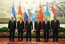 He is married to Azizmo Asadullayeva and has nine children: seven daughters and two sons.[44] Two of his children, Rustam Emomali and Ozoda Rahmon, are senior officials in his administration,[45][46] while another, Zarina Rahmon, was appointed deputy head of Orienbank in January 2017.[47][48] Rustam is believed to be prepared by his father to succeed him as leader of Tajikistan.[49]