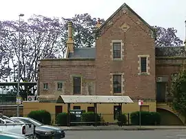 - The railway station is a notable building of brick and sandstone, with Tudor chimneys, built in 1883. It is unusual for railway stations because it has two storeys; it has a Local Government Heritage Listing.[6]