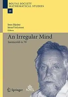Prior to the conference a volume of the Bolyai Society Mathematical Studies Series, An Irregular Mind, a collection of papers edited by Imre Bárány and József Solymosi, was published to celebrate Szemerédi's achievements on the occasion of his 70th birthday.[15][16] Another conference devoted to celebrating Szemerédi's work is the Third Abel Conference: A Mathematical Celebration of Endre Szemerédi.[17]