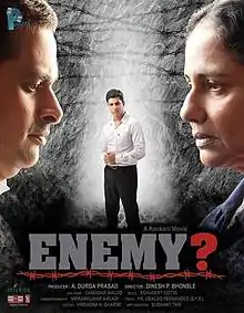 Enemy? is a 2015 Konkani film produced by A. Durga Prasad and directed by Dinesh P. Bhonsle who has previously directed Hindi-movie Calapor.[1] The music was composed by Schubert Cotta. The film won the Best Konkani film Award in 63rd National Film Awards, Vigyan Bhawan New Delhi.[2] It has also won the "GOLDEN CAMERA TROPHY AWARD" (Dadasaheb Phalke Janmbhumi Pursakar) at 8th Nashik International Film Festival and was officially selected to be screen at the 21st Kolkata International Film Festival 2015, Goa Marathi Film Festival 2016 and London Indian Film Festival 2016.[3][4] Enemy was selected for the Indiwood Panorama Competition section at the 2nd edition of Indiwood Carnival 2016 in Hyderabad.[5]