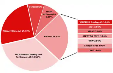EXAA was founded as a public limited company and the shareholders are Wiener Börse AG (25.1%) and the APCS AG (34.5%), as well as a number of different companies from the Austrian energy sector holding smaller shares (April 2013).[1] Since 2005 EXAA forms part of the CISMOgroup, a group comprising a number of different service providers for the energy sector.