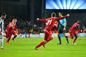 On 8 July 2014 reigning Swedish champions Malmö FF announced that they had signed Adu from Club Brugge as reinforcement for the club's campaign to qualify for the 2014–15 UEFA Champions League. The transfer was originally meant to be carried out on 1 August when Adu's loan contract with Stabæk ran out, however Malmö FF has confirmed that they were in negotiations with Stabæk to acquire Adu when the Swedish transfer window opened on 15 July. At the same time it was also confirmed that Adu would wear the number 8 shirt at the club.[6] On 24 July Stabæk announced that they had agreed to terminate the loan deal prematurely for a minor compensation from Malmö FF.[7] Adu made 15 appearances for Malmö FF during the latter part of the 2014 season, helping the club defend their league title and qualify for the group stage of the 2014–15 UEFA Champions League. Adu was a regular in the next Champions League campaign in 2015–16 as Malmö FF once again qualified for the group stage.