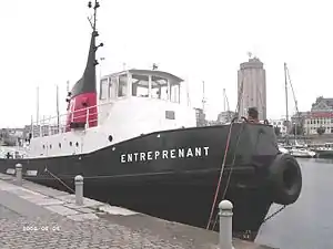 The Entreprenant was a port tug built in 1965. She is now undergoing restoration as a floating exhibit in Dunkirk Port Museum.