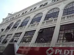 One of the oldest streets in Manila, Escolta was created in 1594. Its name was derived from the Spanish word escoltar, meaning "to escort".[1] Escolta was known for its concentration of immigrant merchants, mainly from Fujian, China, who came to make their fortune during the Manila-Acapulco Galleon trade. The street was lined with shops and boutiques selling imported goods from China, Europe and elsewhere in Latin America that arrived in the nearby port of San Nicolas. By the late 19th century, Escolta flourished into a fashionable business district hosting the city's tallest buildings as well as the Manila Stock Exchange. The shops were replaced by modern department stores and an electric tram line known as tranvia plied the street. Escolta served as the city's primary commercial district until its decline in the 1960s when the center of business gradually shifted to Makati.[2]